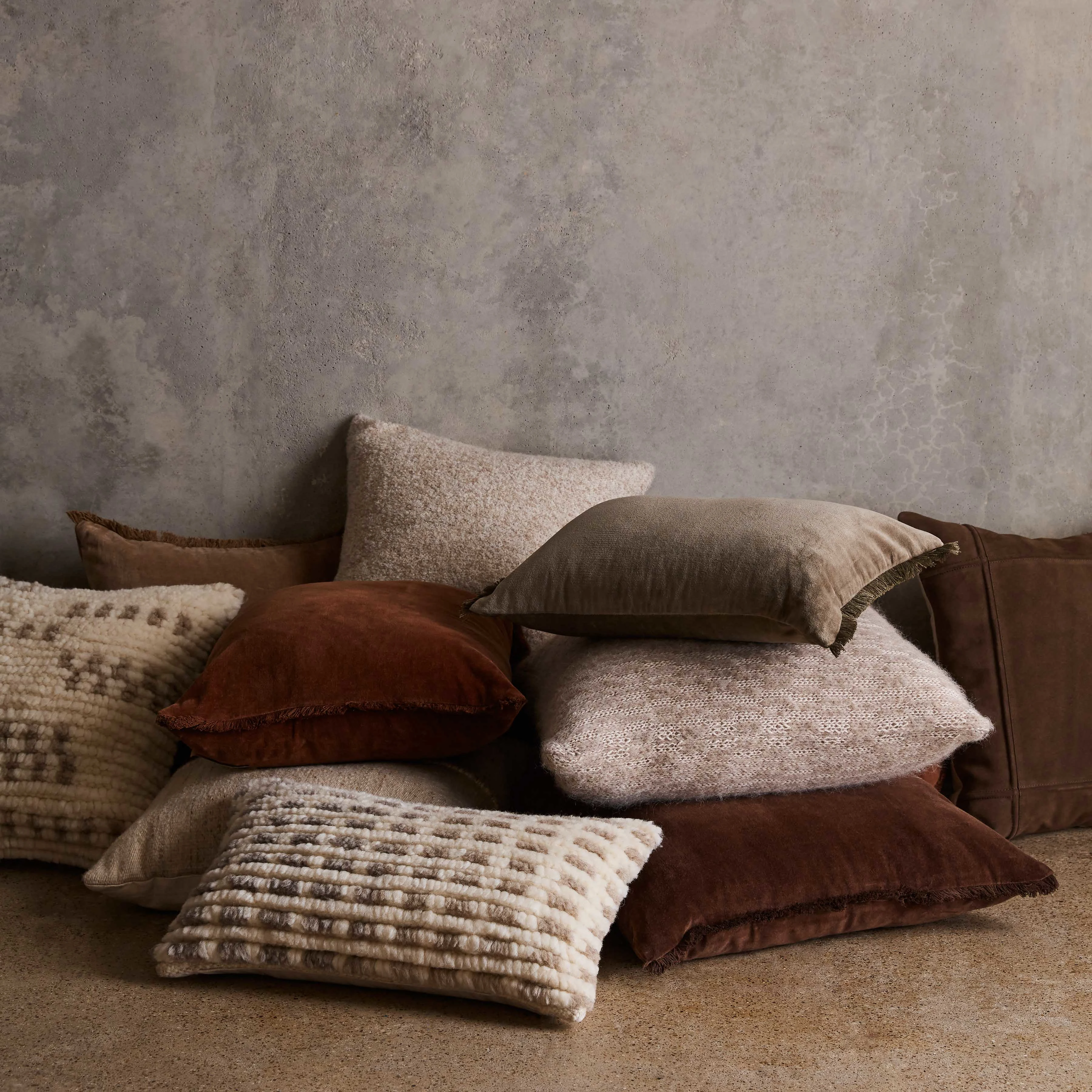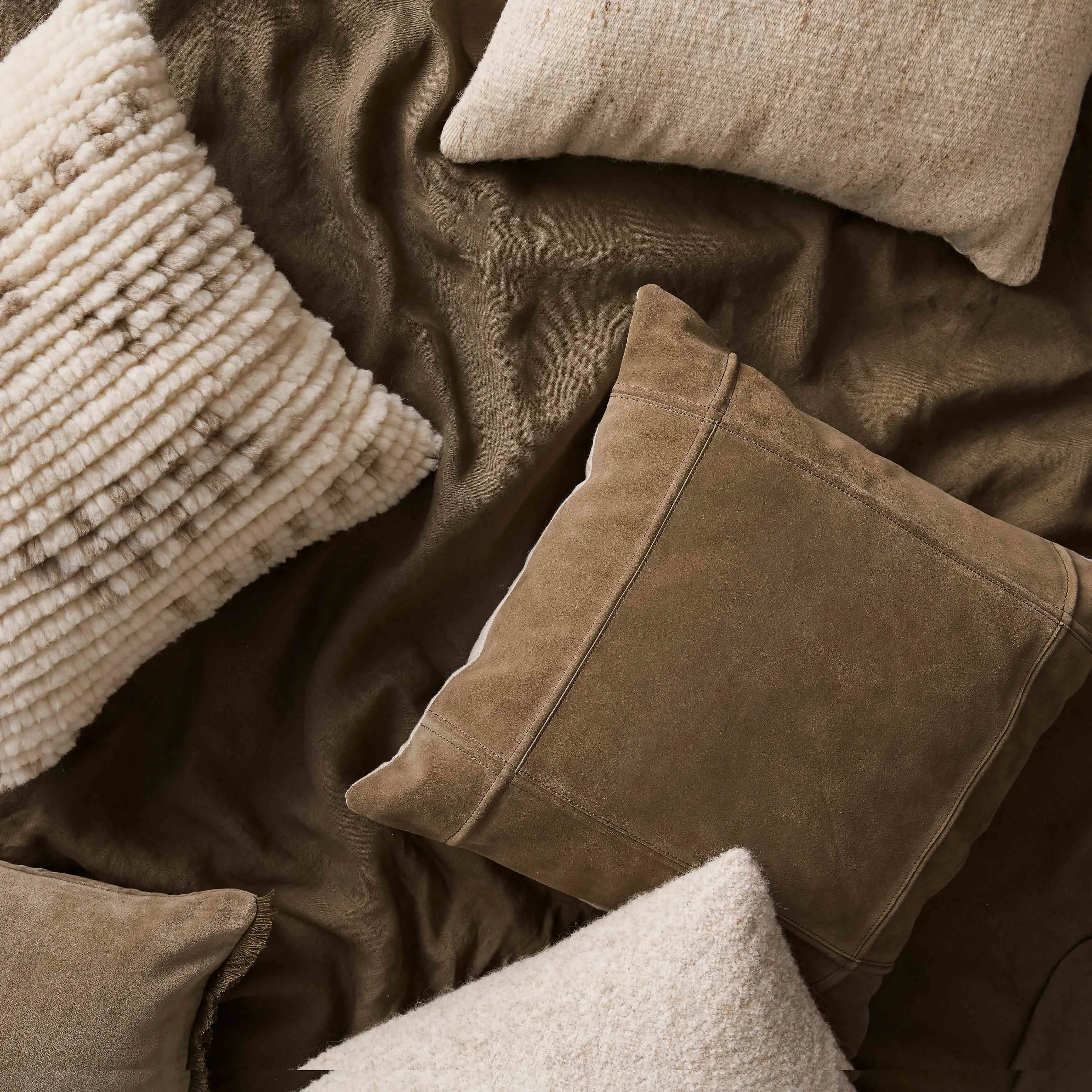Simplicity goes with everything. An understated staple, this effortless accent pillow is stitched with a square, border-like design that plays well in any room. Available in shades of chocolate, caramel, or olive, each piece is the perfect mixer for your favorite armchair or a layered bed.