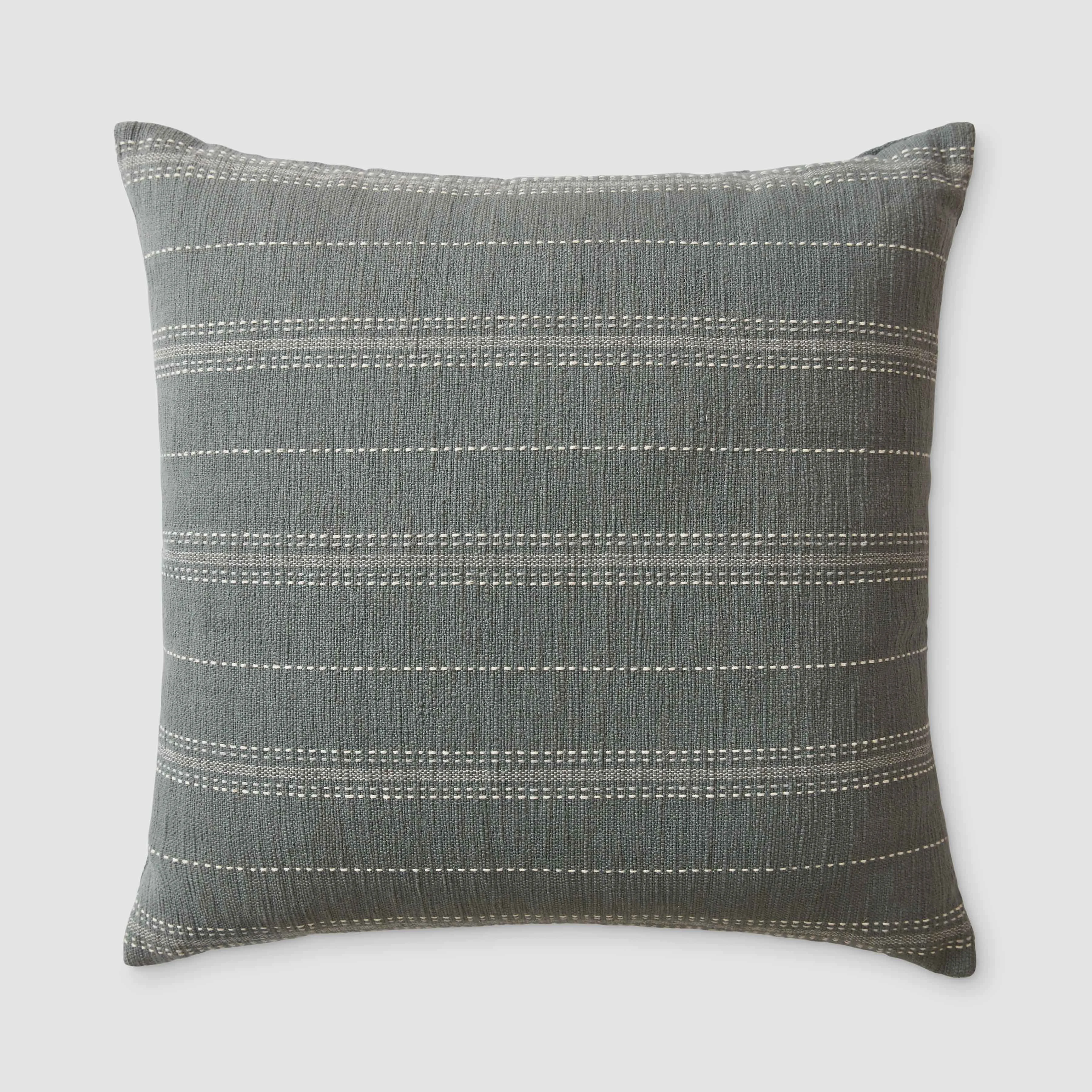 An elevated essential for any space, this laid-back accent pillow balances simplicity with subtle sophistication. Weaving solid and dashed stripes into light cotton, each piece brings a well-traveled charm to your living room or bedroom. Available in shades of neutral with clove stripes or Aegean blue, this is the pillow you’ve been dreaming about.