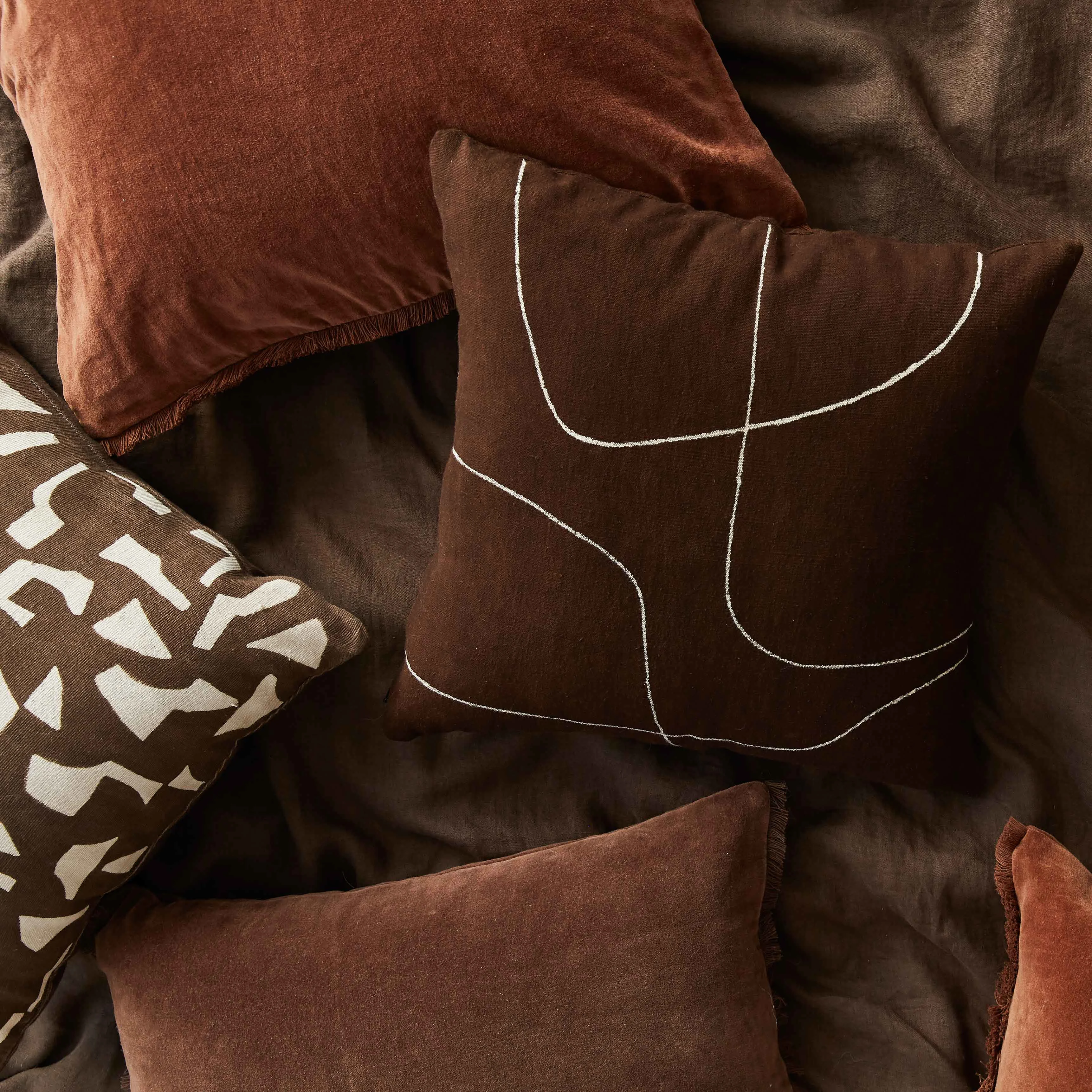 Making a statement without stealing the show, this mix-and-match accent pillow brings real character to any collection. Inspired by bold, graphic prints, every pillow is meticulously hand-painted with natural dyes, creating subtle variations that make each piece one of a kind.